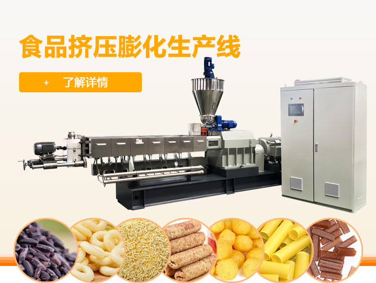 我司擠壓機和擠壓膨化機廣泛應用于食品,飼料,化學原料,等研發和生產領域。我司食品生產設備主要涵蓋膨化食品生產線,油炸食品生產線,通心面生產線,早餐谷物生產線,玉米片生產線,寵物食品生產線,中大型膨化水產飼料生產線,小型飼料膨化機制粒機,組織蛋白生產線,奇多零食生產線,變性預糊化淀粉生產線,面包糠生產線,膨化谷物營養粉生產線,寵物咬膠生產線等領域。